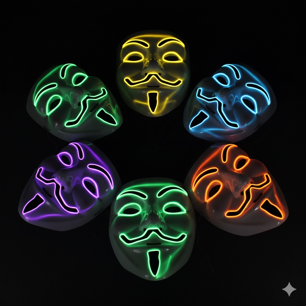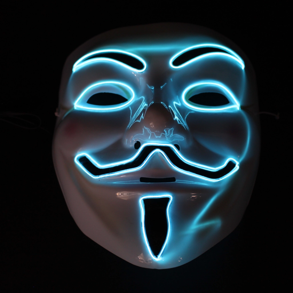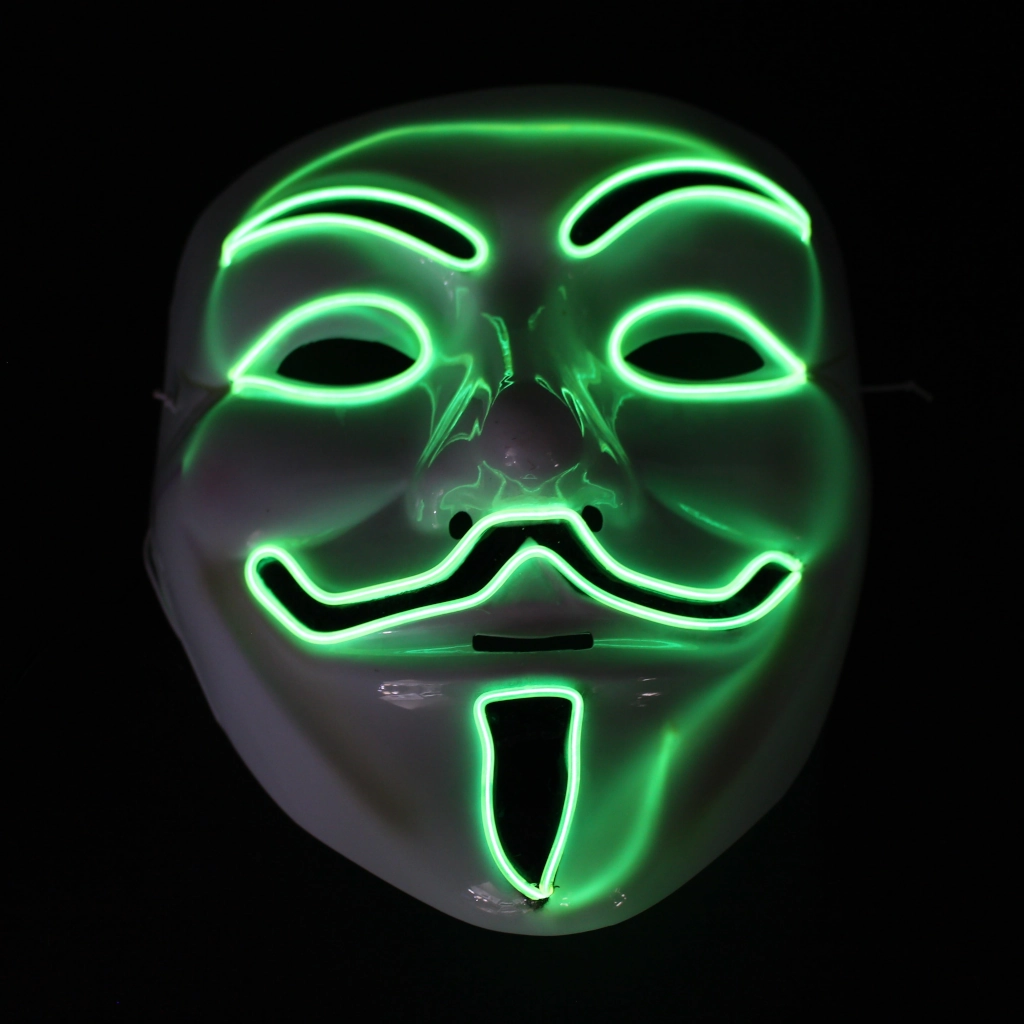 ¡Ilumina la noche y tu estilo hacker con esta electrizante Máscara de Anonymous con Luz LED! Perfecta para destacar en cualquier evento oscuro, esta máscara lleva el icónico disfraz a un nivel futurista y vibrante.